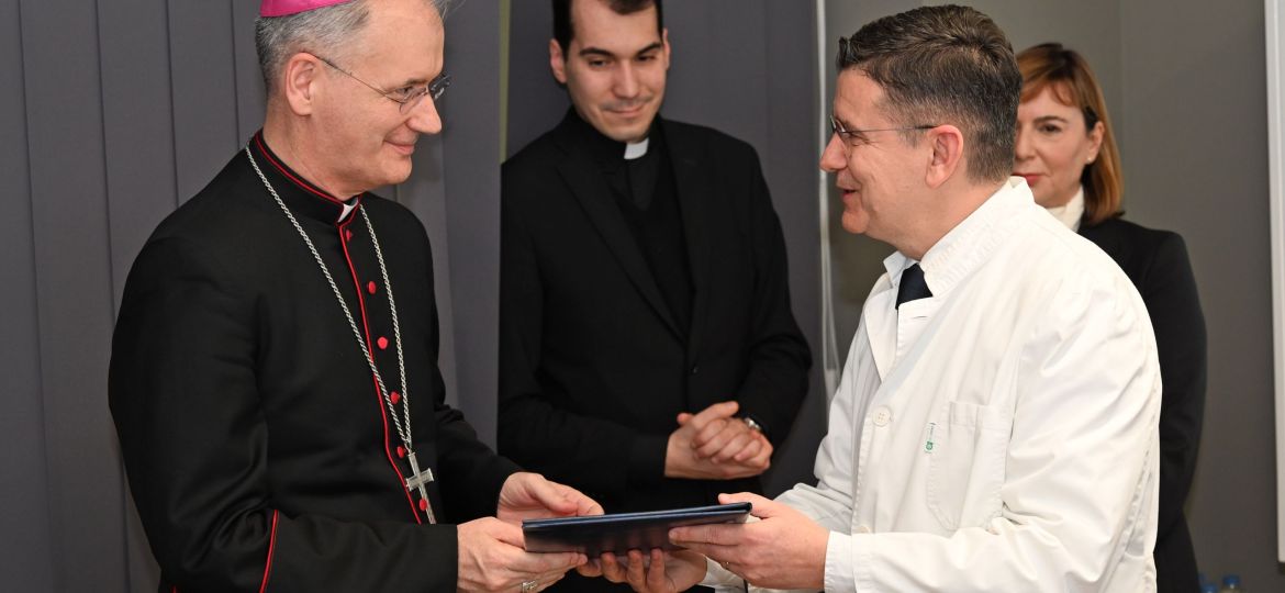U ime bolničke zajednice, ravnatelj prof.dr.sc. Edvard Galić, prim. dr. med., izrazio je osobitu dobrodošlicu uzvanicima te je uz riječi zahvalnosti upoznao nadbiskupa i ministricu s bogatom poviješću i poslanjem Bolnice. Podsjetio je na stoljetnu tradiciju skrbi za bolesne te ulogu redovničkih zajednica koje su obilježile duhovni i karitativni identitet ustanove, darujući nadbiskupu izvadak iz Kronike milosrdnih sestara sv. Križa koje su kroz povijest neumorno služile bolesnicima upravo u ovoj bolnici.